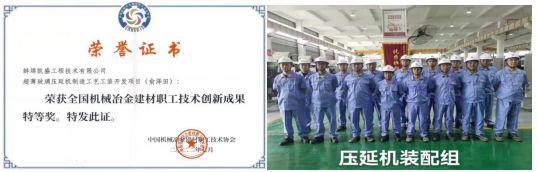 通过不懈的努力,通过技术创新,具体开发了能够满足多种型号压延机主体机架制作要求的工装和多种型号过渡辊台过渡辊装配要求的工装,开发了压延机主体压延辊轴承自动装配装置。通过这三项创新有效提升压延机关键零部件生产及装配的质量,每台套设备生产装配整体效率提升达10%以上。本项目获得两项实用新型专利。同时玻璃生产线压延机装备共获得发明专利2项、实用新型专利9项。本项目已于2019年上半年逐步投入,在印度、南玻等多个项目中使用,综合节支每台套约为0.5万元。公司压延机成套设备具有独立的知识产权,国内市场占有率达到80%以上并,在世界范围内做到了技术领先。2019-2022年累计产生的社会效益为销售310台套,产值达5.45亿元,利润达1.44亿元,税收709万元,项目累计节资达186.1万元。2022年7月超薄玻璃压延机制造工艺工装开发项目荣获全国机械冶金建材职工技术创新成果特等奖。